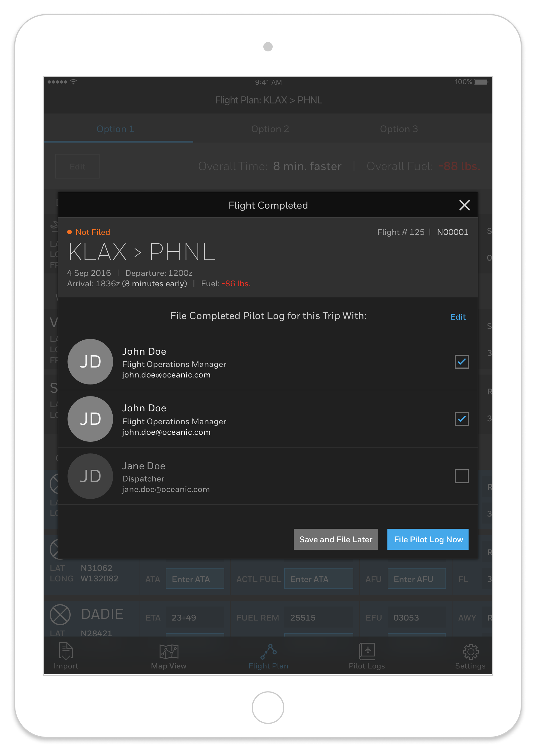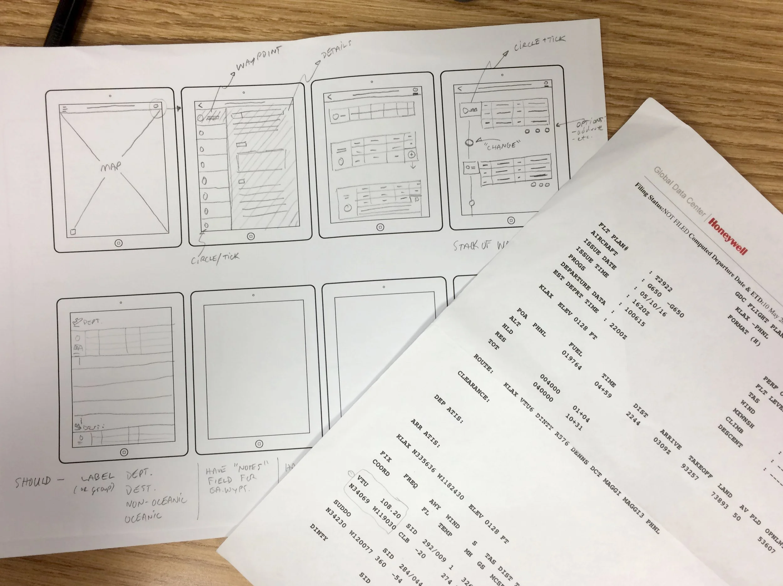 At the time we designed this, oceanic crossing logs were often created and maintained by hand with paper maps and printouts. Storage and data entry for oceanic logs could be a pain point. This whole process falls to pilots, who'd rather be flying than doing paperwork.