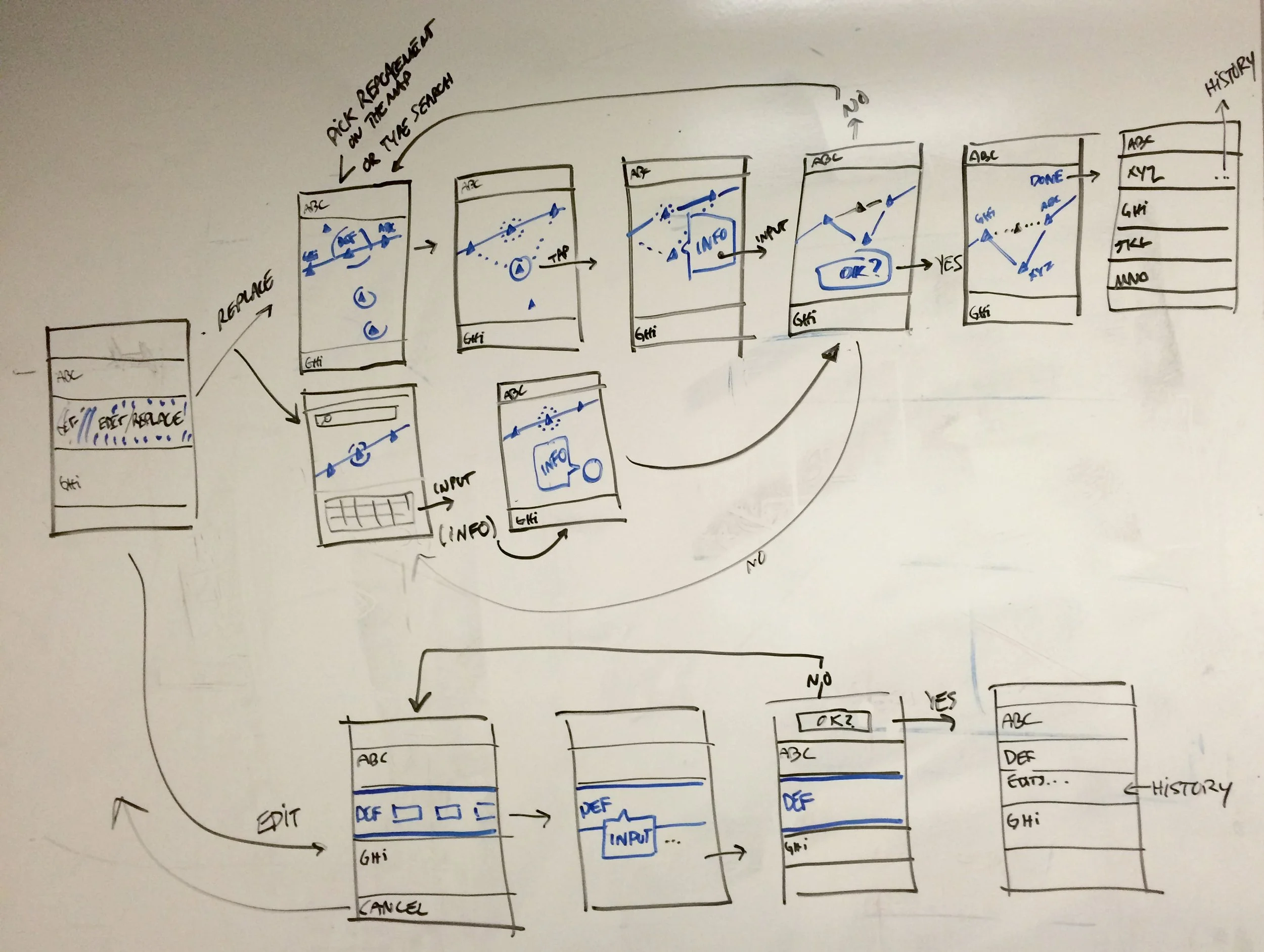 I refined those early sketches into a rough application flow, which we again shared with our stakeholders: